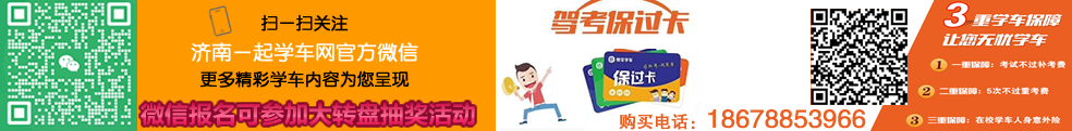 學(xué)車(chē)報(bào)名電話(huà):18678853966    業(yè)務(wù)咨詢(xún)熱線(xiàn):0531-89684386    學(xué)車(chē)咨詢(xún)QQ:263857128