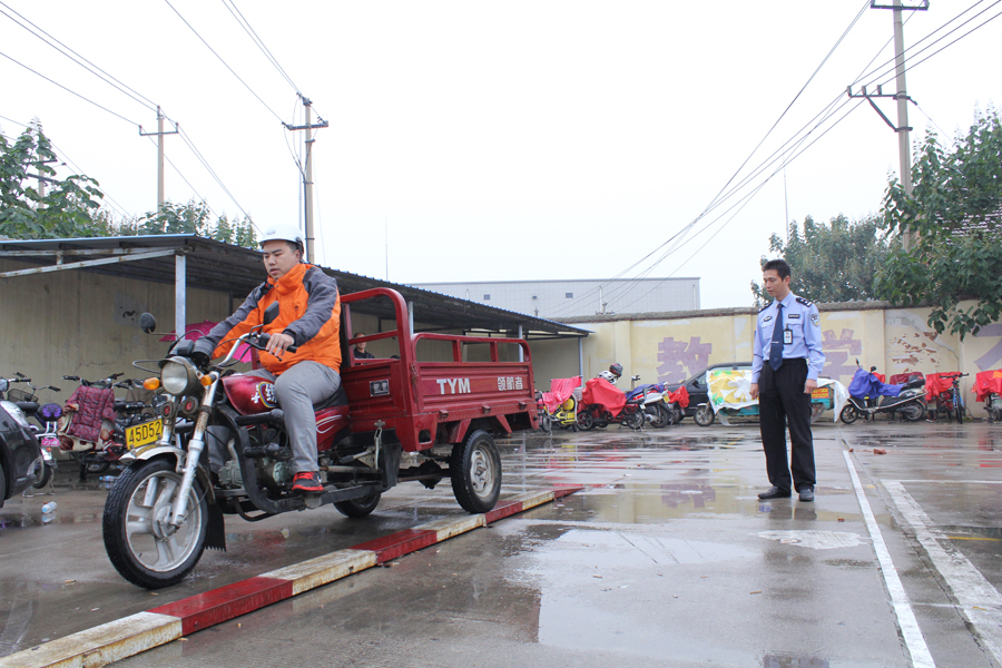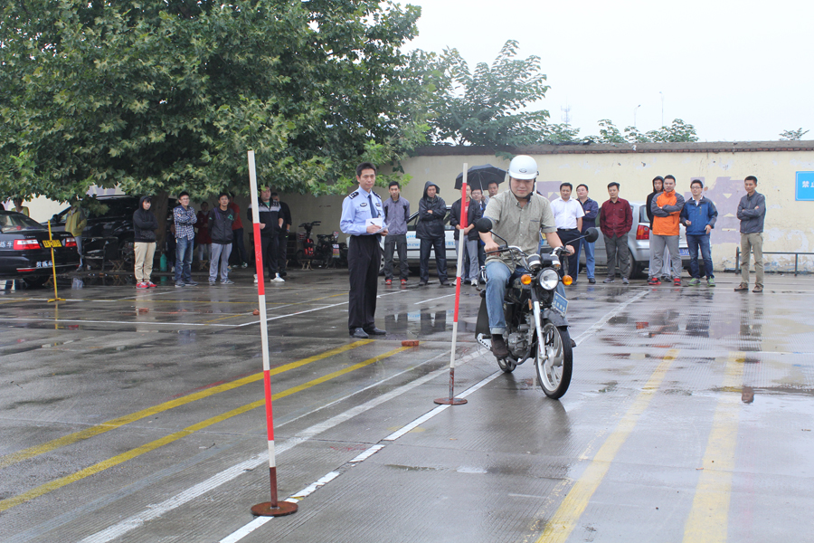 濟南歷下車管所冒雨進(jìn)行摩托車考試!