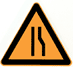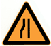車行道兩側(cè)變窄主要指沿道路中心線對(duì)城縮窄的道路;此標(biāo)志設(shè)在窄路以前適當(dāng)位置。車行道右側(cè)縮窄。此標(biāo)志設(shè)在窄路以前適當(dāng)位置。車行道左側(cè)縮窄。此標(biāo)志設(shè)在窄路以前適當(dāng)位置。此標(biāo)志設(shè)在橋面寬度小于路面寬度的窄橋以前適當(dāng)位置。