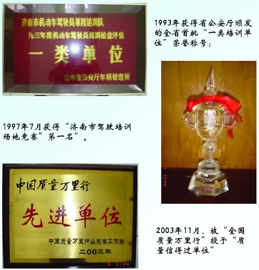 1997年7月獲得“濟南市駕駛培訓場地競賽”第一名和第三名。